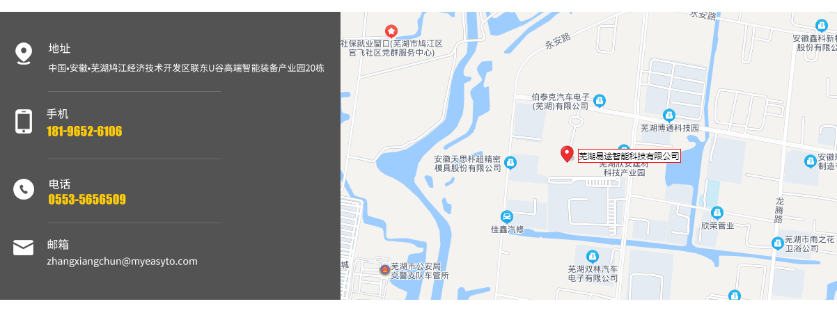 - 蕪湖易途智能科技有限公司,是一家致力于工業智能裝備的設計、制造、銷售及服務于一體的科技型企業,公司的主營業務是自動測試設備、智能制造產線和工業物聯系統,向用戶提供整體應用解決方案,以及相關的技術咨詢和培訓服務。 我們的產品和技術主要應用于汽...